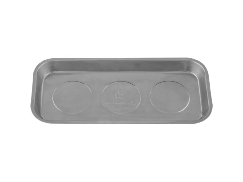Поддон прямоугольной формы 360х165 мм, применяется для удержания во время ремонта техники железосодержащих деталей и инструментов средних размеров (болты, гайки, шайбы, ключи, торцевые головки, ШГИ и т.д.). В поддоне надежно удерживаются детали в горизонтальном, вертикальном и перевернутом положении. Суммарная масса удерживаемых деталей может составлять до 5.5 кг, в вертикальном положении тарелки и 4.4 кг в перевернутом, благодаря применению трех мощных неодимовых магнитов. Крышки магнитов, изготовленные из мягкой резины, защищают поверхности от возможных повреждений.
